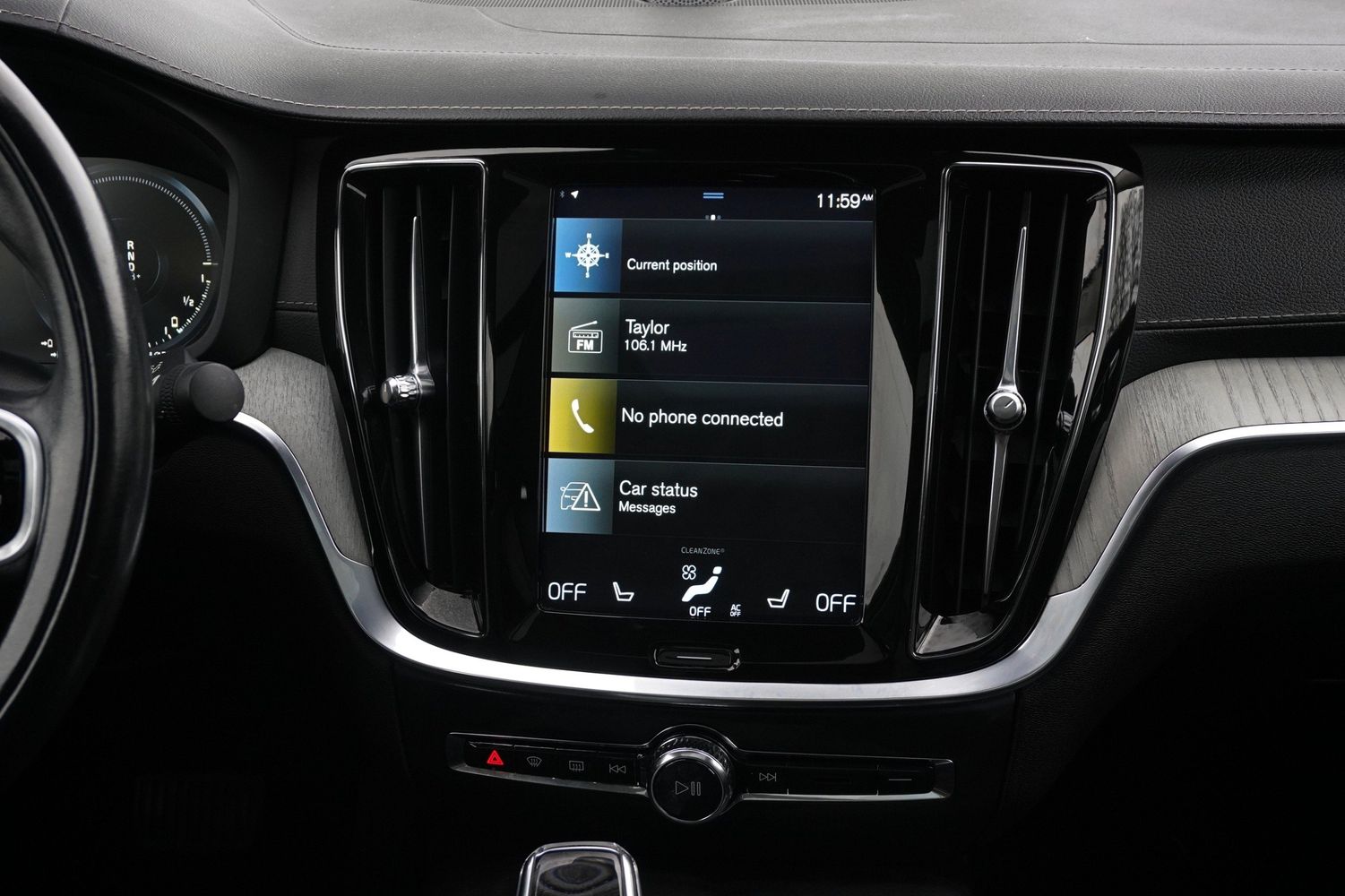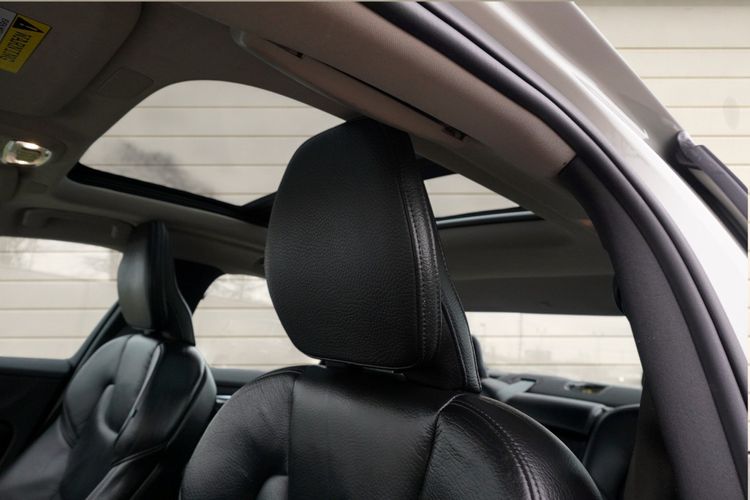 Leather-wrapped steering wheel and high-quality Scandinavian materials throughout.
