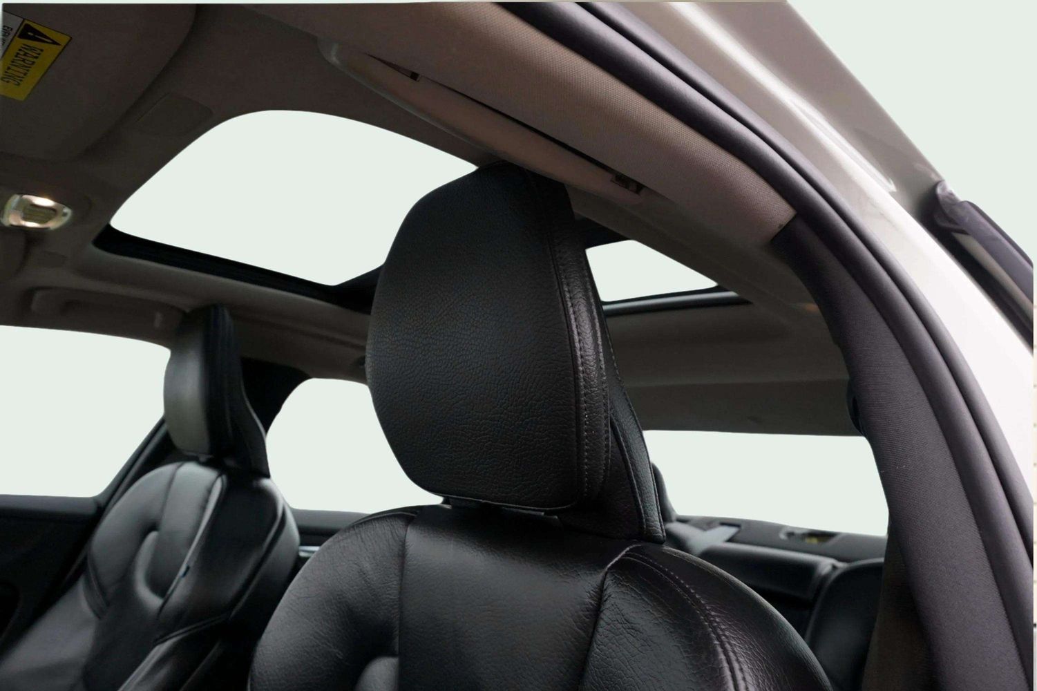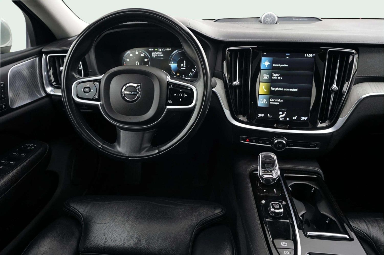 Leather-wrapped steering wheel and high-quality Scandinavian materials throughout.